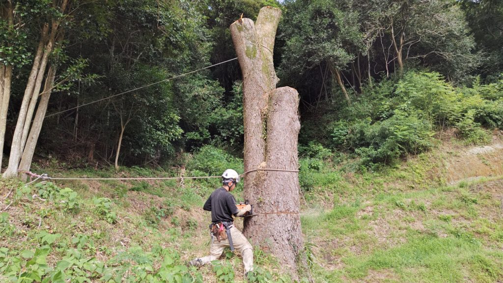 いすみ市内にて楠木の伐採業務を行いました!ラフタクレーンがギリギリ届いて一安心💦安全に無事故で終えました(*´ω`*)