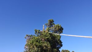 家屋脇にある高さ22m程のヒノキの芯止め作業...